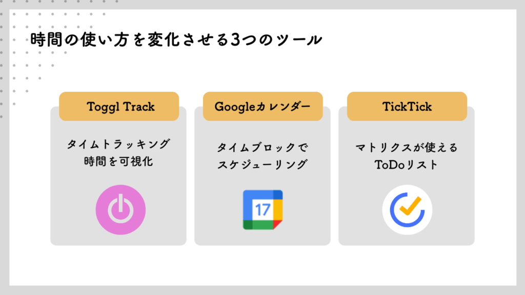 ここでは、時間の使い方や効率化を改善できる便利なツールをご紹介します。
