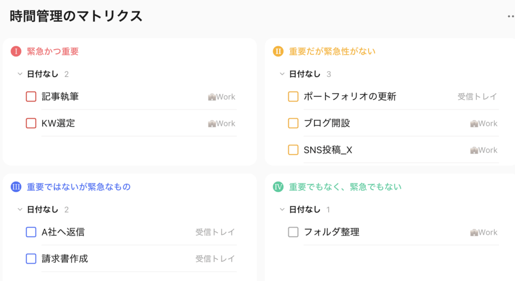 - 重要度×緊急度でタスクを分類する