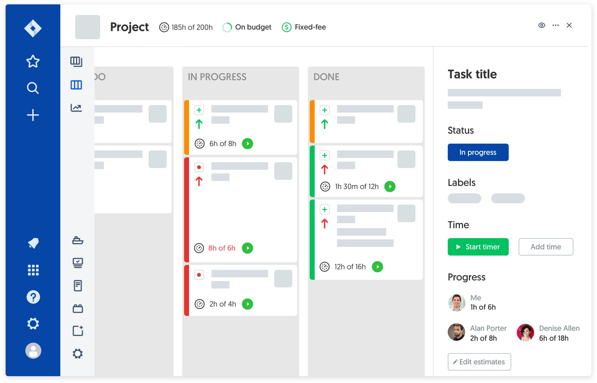 タイムトラッキングも可能ですが、メインの機能はプロジェクト・タスク管理ツールです。