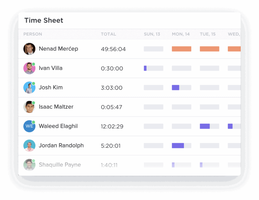 ClickUpは、一つのプラットフォームで業務全体を管理したいチーム利用に最適です。プロジェクト管理機能に時間追跡が統合されています。
